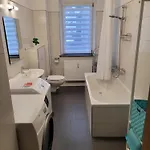 Disfruta de la comodidad del baño del Apartment In Ruhiger Suedvorstadt, equipado con secadores de pelo y toallas. Además, hay bañera y también inodoro separado.